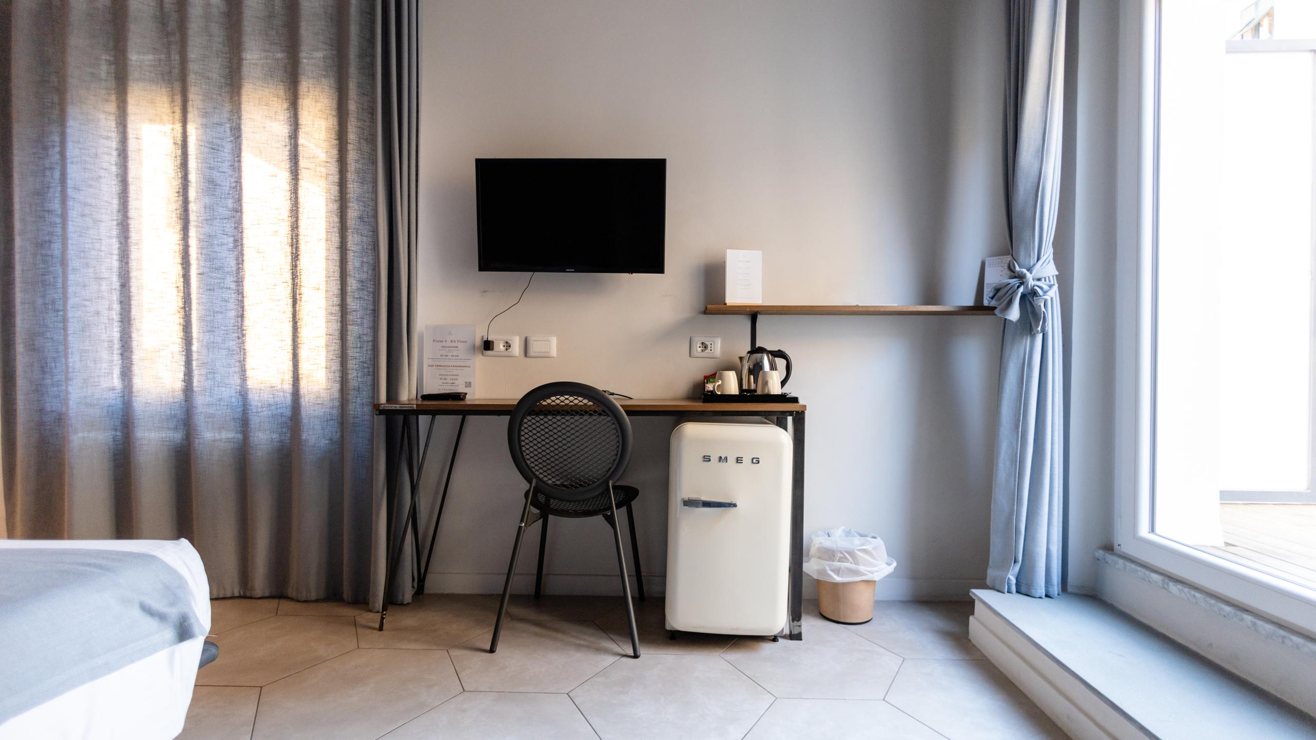 Le junior suite sono pensate per un soggiorno all’insegna del relax e del comfort. Gli ambienti ampi e ben organizzati, insieme agli arredi su misura e tocchi di design realizzati da artigiani locali, rendono ogni dettaglio unico. Un terrazzo privato di 10 m² completa la suite, offrendo uno spazio esterno riservato per momenti di relax. La camera si compone di due zone distinte: la zona notte, con letto king size, e la zona living, versatile e in grado di ospitare fino a 3 persone. Ogni area dispone della propria TV, garantendo privacy e comfort a tutti gli ospiti.Situata in un’ala laterale dell’hotel al 1° piano, la suite è raggiungibile tramite 6 gradini.