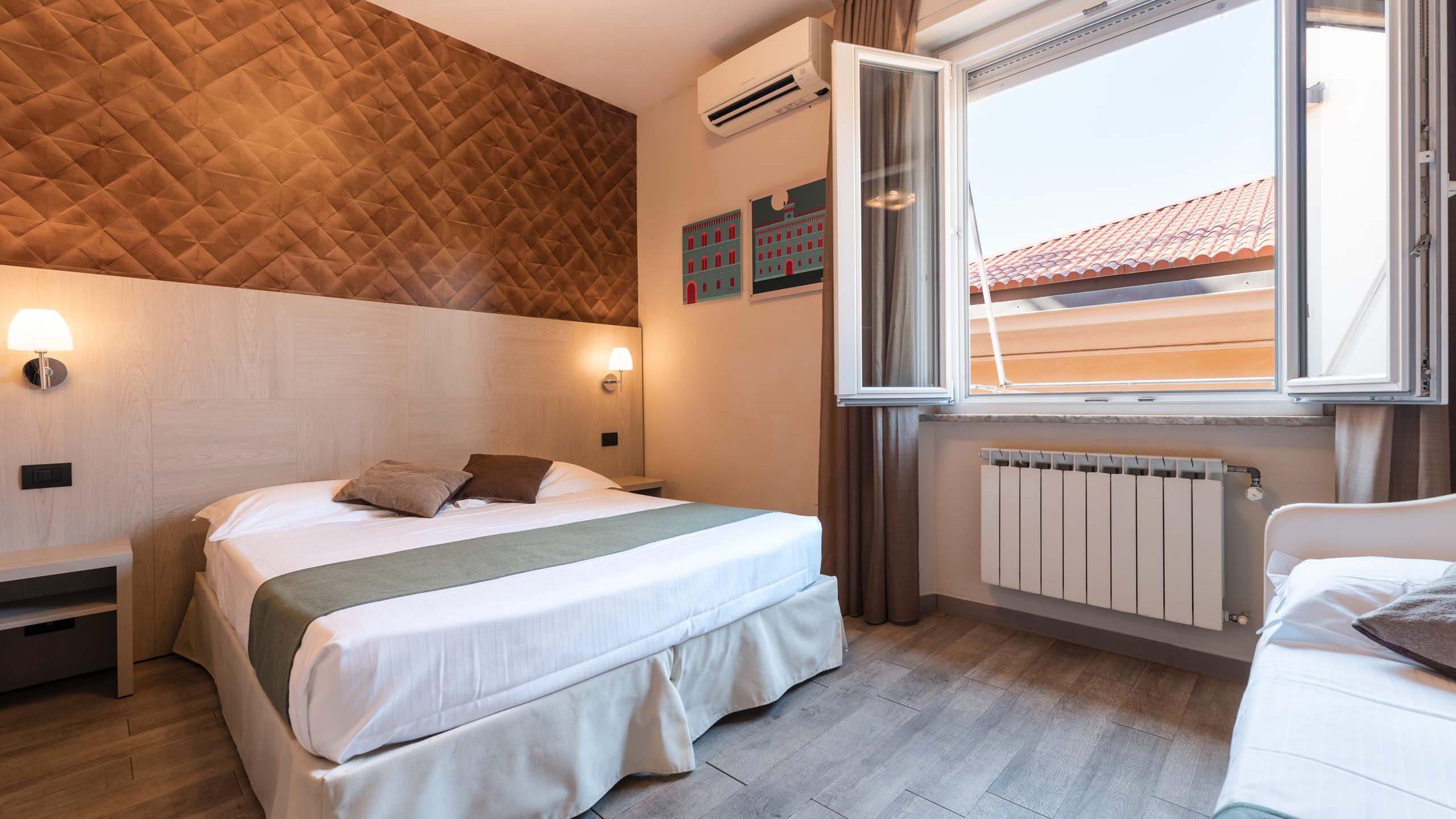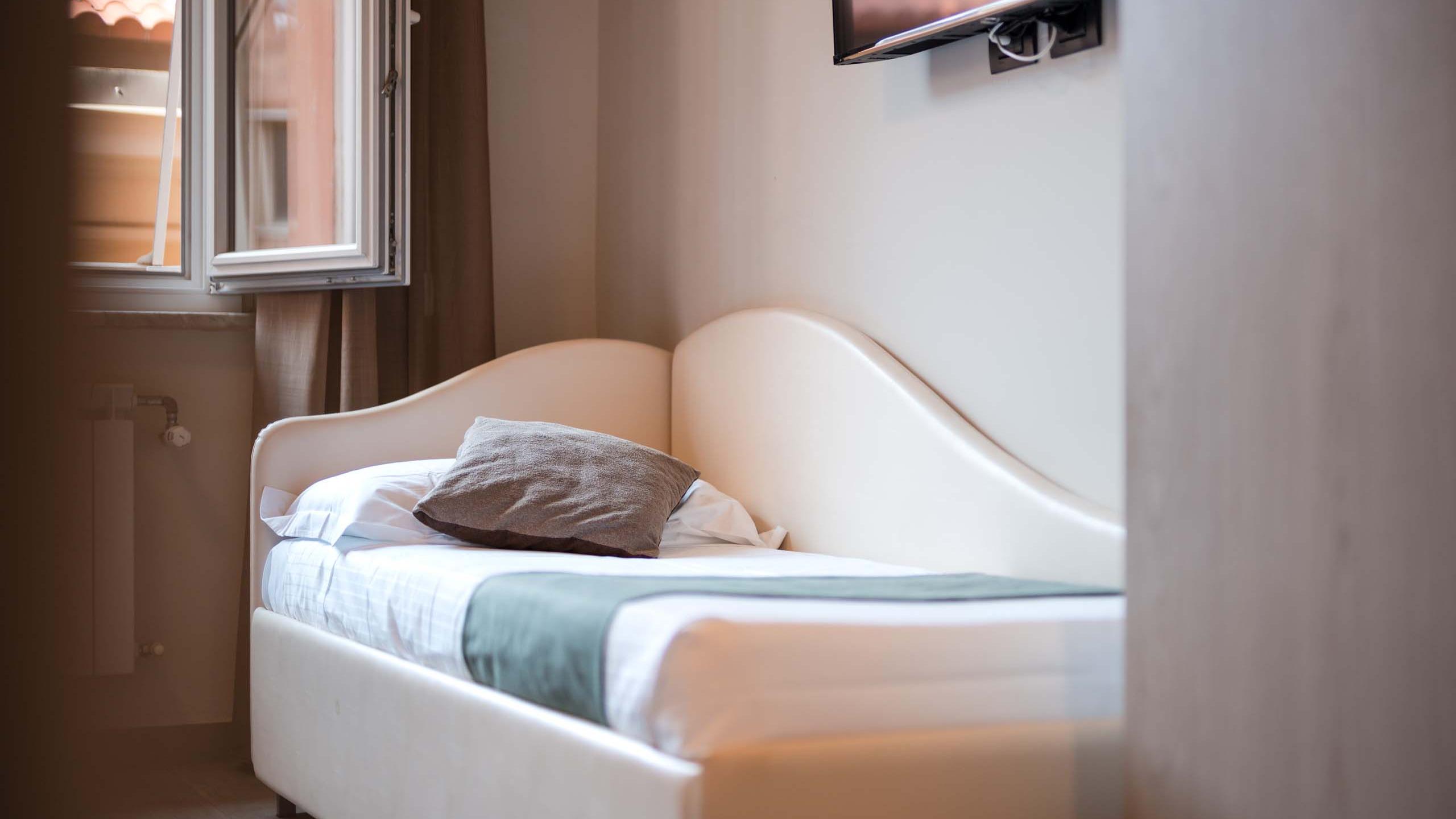 Le nostre camere superior plus ristrutturate da poco si differenziano per il loro design e per il bagno moderno con ampia doccia rifinito nei minimi dettagli. Sono tutte ubicate al terzo piano dell’hotel e ti offrono ogni comfort. Il “plus” di questa categoria è il comodo divano letto per ospitare una persona in più.