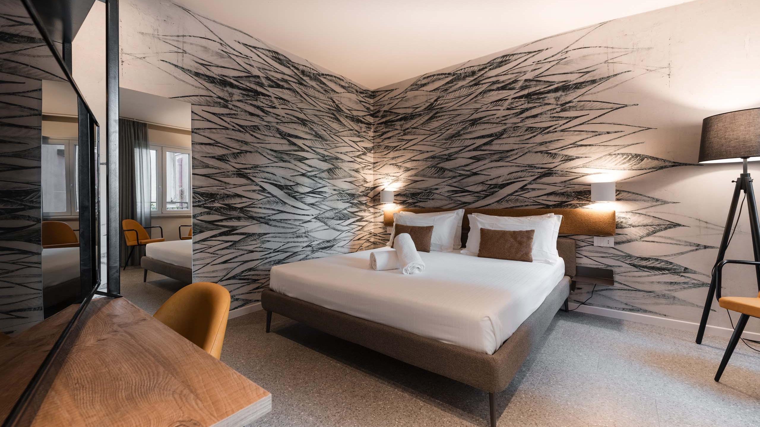 Suite magnifique située au premier étage avec grandes fenêtres donnant sur la cour et une terrasse de 8 m². Elle se compose de deux chambres, séparées par une porte coulissante ainsi que d’une zone de séjour. Cette suite très moderne avec douche à l’italienne est notre fleuron.